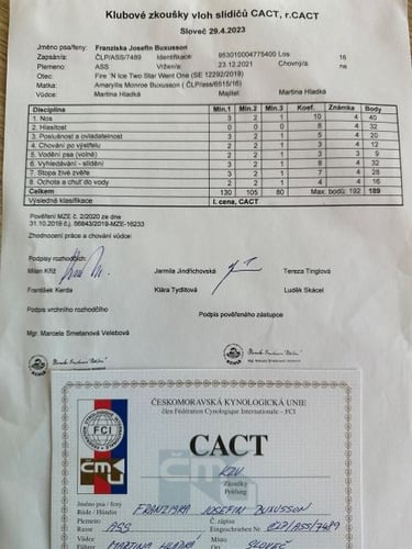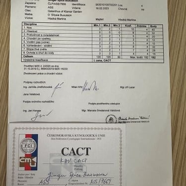 CAJC, CACIB, BOB JUNIOR, BOB, BIS PUPPY, HUNTING TEST