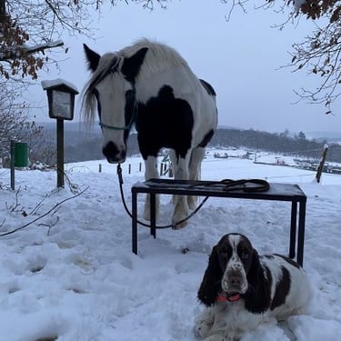 Franzi je náš největší klaun, každého se snaží vyprovokovat ke hře, je velmi kamarádská ke všem psím kolegům, miluje aporty, má vrozený aport, který dokáže hodiny provozovat. Hezky se s ní pracuje, je velmi poslušná a má skvělý drive. Má lovecké zkoušky a je využívána i v praxi, ale objevili jsme v ní velký potenciál na dummy sport, kde může využít svoji aportovací vášeń. Franzi je také pes, který tráví hodně volného času u koní e svojí kamarádkou klisničkou Shelby a svojí milovanou Nikolkou.