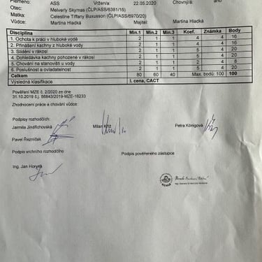 INTERNATIONAL TRIAL CACIT, CACT MEMORIÁL MILENY ŠTĚRBOVÉ 2020 1st prize CACT, BREED WINNER